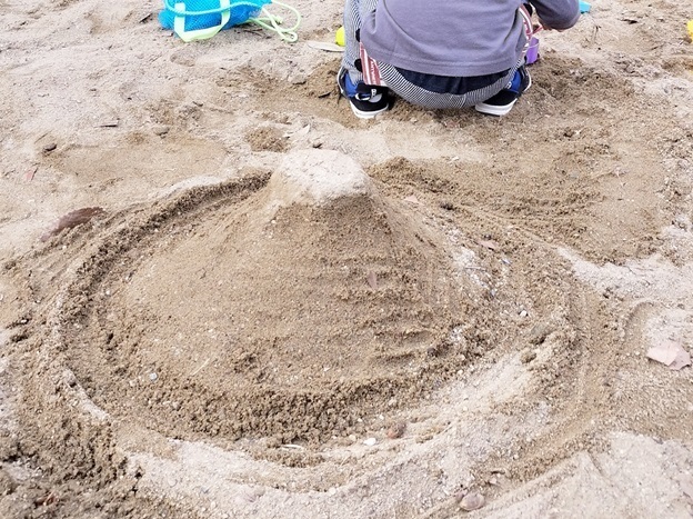 長女、久しぶりのガチ砂場遊びで作った富士山!